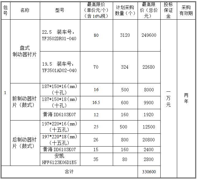 (1)車用制動(dòng)器襯片的技術(shù)參數(shù)要求按《GB5763-2008汽車用制動(dòng)器襯片》執(zhí)行; (2)帶緩速器的鼓式制動(dòng)器襯片行駛里程應(yīng)大于6萬公里,盤式制動(dòng)器襯片應(yīng)大于6萬公里。 (3)投標(biāo)人須提供投標(biāo)產(chǎn)品由國家權(quán)威部門、國家認(rèn)可實(shí)驗(yàn)室或具有資質(zhì)的第三方實(shí)驗(yàn)室出具的質(zhì)檢報(bào)告(其中,國家認(rèn)可實(shí)驗(yàn)室證書、具有資質(zhì)的第三方實(shí)驗(yàn)室證書也需一并附在響應(yīng)文件中)。 3.包裝要求 制動(dòng)器襯片要求有完好的包裝,要適用于長(zhǎng)途運(yùn)輸和多次搬運(yùn)并具有一定的防腐和防潮等措施,以保證制動(dòng)器襯片的質(zhì)量。 4.項(xiàng)目說明 (1)本項(xiàng)目采購內(nèi)容共1個(gè)合同包,投標(biāo)人對(duì)所投包的采購內(nèi)容必須全投; (2)總報(bào)價(jià)不能超過總價(jià)最高限價(jià),否則總報(bào)價(jià)按總價(jià)最高限價(jià)處理。每個(gè)型號(hào)的報(bào)價(jià)不能超過該型號(hào)采購單價(jià)最高限價(jià),否則報(bào)價(jià)按單價(jià)最高限價(jià)處理。 二、合格投標(biāo)人的資格條件 投標(biāo)人應(yīng)具有以下資歷: 1.具有獨(dú)立法人資格、良好的信譽(yù),獨(dú)立履行合同能力和一定的資金墊付能力。 2.投標(biāo)人必須為投標(biāo)產(chǎn)品的生產(chǎn)廠家或生產(chǎn)廠家正式授權(quán)的代理商。 3.公交車用制動(dòng)器襯片的生產(chǎn)企業(yè)必須通過ISO9001:2008或ISO9001:2015或ISO/TS16949質(zhì)量體系認(rèn)證。 4.公交車用制動(dòng)器襯片須近三年被地市級(jí)公交企業(yè)批量使用(500個(gè)以上)或?yàn)榭蛙噺S批量配套(500個(gè)以上),提供合同和結(jié)賬發(fā)票復(fù)印件。 5.符合《中華人民共和國政府采購法》第二十二條規(guī)定應(yīng)當(dāng)具備的條件。 6.應(yīng)自覺抵制采購領(lǐng)域商業(yè)賄賂行為。 7.能夠提供快速、良好的售后服務(wù)。 8.投標(biāo)人所投產(chǎn)品須為正品行貨。 9.投標(biāo)人未被最高人民法院在“信用中國”網(wǎng)(www.creditchina.gov.cn)中列入失信被執(zhí)行人名單。 三、報(bào)名須知 有意向參與本次采購的供應(yīng)商可于2019年 1月23日至1月30日(節(jié)假日除外)到招標(biāo)辦公室(鞍山市鐵西區(qū)八家子街2號(hào),物資供應(yīng)分公司會(huì)議室)報(bào)名。 報(bào)名時(shí)需攜帶以下文件: 1.營業(yè)執(zhí)照副本復(fù)印件并加蓋投標(biāo)人公章。 2.代理商須出具生產(chǎn)廠家頒發(fā)的代理授權(quán)書復(fù)印件并加蓋投標(biāo)人公章。 3.所投產(chǎn)品的“ISO9001:2008”或“ISO9001:2015”或“ISO/TS16949”質(zhì)量體系認(rèn)證證書復(fù)印件并加蓋投標(biāo)人公章。 4.公交車用制動(dòng)器襯片近三年被地市級(jí)公交企業(yè)批量使用(500個(gè)以上)或?yàn)榭蛙噺S批量配套(500個(gè)以上)的合同和結(jié)賬發(fā)票復(fù)印件加蓋投標(biāo)人公章。 5.投標(biāo)產(chǎn)品由國家權(quán)威部門、國家認(rèn)可實(shí)驗(yàn)室或具有資質(zhì)的第三方實(shí)驗(yàn)室出具的產(chǎn)品質(zhì)量符合國家標(biāo)準(zhǔn)的質(zhì)檢報(bào)告(其中,國家認(rèn)可實(shí)驗(yàn)室證書、具有資質(zhì)的第三方實(shí)驗(yàn)室證書也需提供)。 四、資格審查 本項(xiàng)目投標(biāo)人的資格條件在評(píng)審時(shí)由談判小組的資質(zhì)評(píng)審專家進(jìn)行審查。投標(biāo)人應(yīng)在響應(yīng)文件中按采購文件的規(guī)定和要求附上資格證明文件,若提供的資格證明文件不全或不實(shí),將導(dǎo)致其響應(yīng)無效或投標(biāo)人資格被取消。 五、遞交響應(yīng)文件截止時(shí)間、開標(biāo)時(shí)間及開標(biāo)地點(diǎn) 遞交響應(yīng)文件截止及開標(biāo)時(shí)間:1月31日早8:30 遞交響應(yīng)文件及開標(biāo)地點(diǎn):鞍山市交通運(yùn)輸集團(tuán)有限公司14樓會(huì)議室,屆時(shí)請(qǐng)投標(biāo)人的法定代表人或其授權(quán)代表按時(shí)參加采購會(huì)議。 投標(biāo)人當(dāng)天需提前十五分鐘到開標(biāo)地點(diǎn)繳納投標(biāo)保證金。采購會(huì)議開始前五分鐘停止收取保證金,過時(shí)一概不予收取。 六、響應(yīng)文件的送達(dá) 響應(yīng)文件必須在遞交響應(yīng)文件截止時(shí)間前送達(dá)開標(biāo)地點(diǎn),逾期送達(dá)或密封和標(biāo)注不符合采購文件規(guī)定的響應(yīng)文件恕不接受。本次采購不接受郵寄的響應(yīng)文件。 七、采購單位、地址和聯(lián)系方式 采購單位:鞍山市交通運(yùn)輸集團(tuán)有限公司 地 址:鞍山市鐵東區(qū)民生東路1號(hào) 聯(lián) 系 人:陳瑩 聯(lián)系電話:0412-5600945 手 機(jī): 15241271775 |